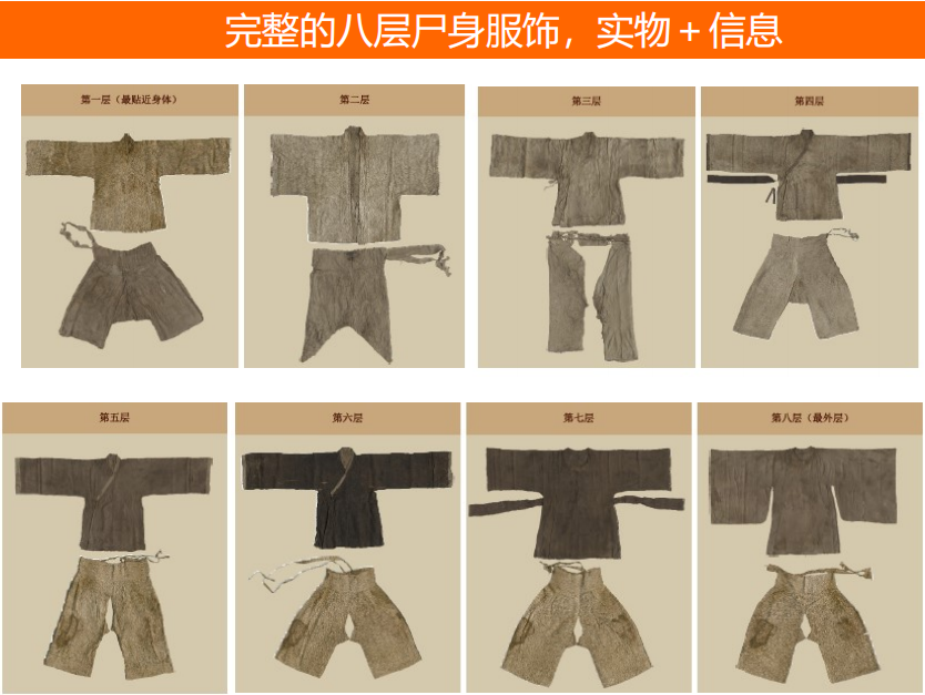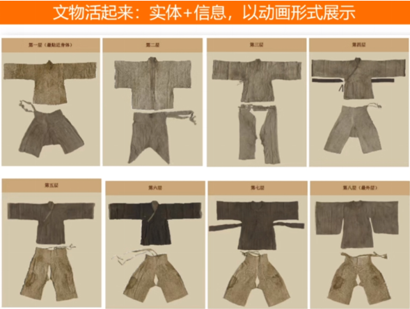 通過(guò)精準(zhǔn)的掃描技術(shù),我們能夠細(xì)致地識(shí)別出服裝的各個(gè)層次,并小心翼翼地將它們逐一分離。隨后,我們對(duì)這些珍貴的遺物進(jìn)行了精心的清洗與妥善的包裝,整個(gè)過(guò)程連貫而流暢。最終,我們成功地復(fù)原了八套完整的服飾,包括八件上衣和八條褲子,它們均屬于墓主的隨葬品,為我們展現(xiàn)了古人服飾的豐富細(xì)節(jié)與獨(dú)特風(fēng)貌。