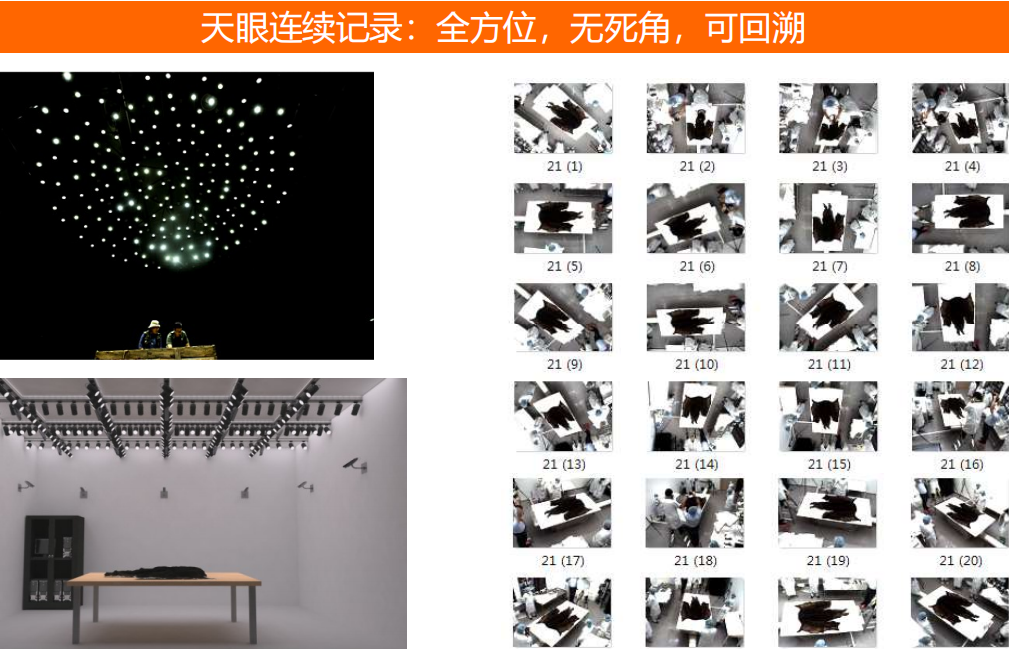 我們?cè)趯?shí)驗(yàn)室里面搭建了天眼系統(tǒng),上面有24臺(tái)工業(yè)攝像機(jī),全方位無(wú)死角地記錄下工作者們的全部操作流程,保證流程可回溯。