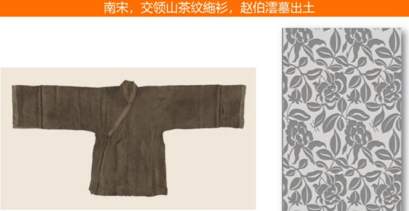 “山茶紋”作為紋樣,不僅美觀大方,而且在中國(guó)文化中常象征著堅(jiān)韌和高潔。山茶紋飾在服飾上,給人以優(yōu)雅和純潔的感覺(jué)。