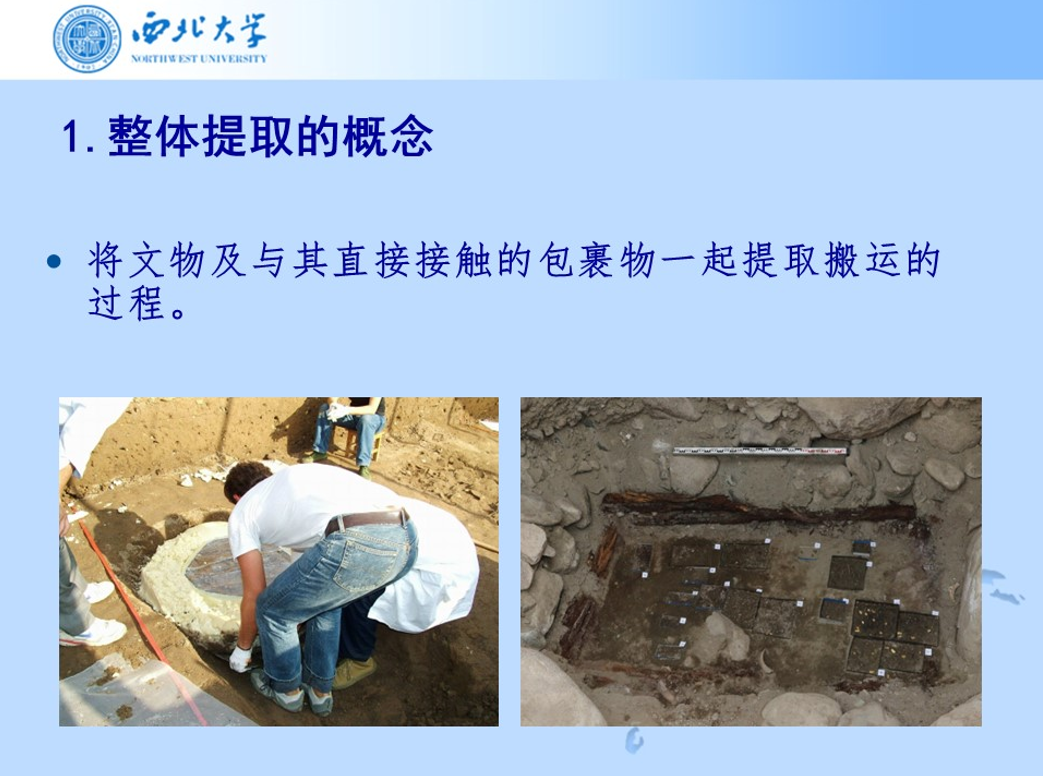 先介紹一下什么是整體提取。所謂的整體提取,簡而言之,就是把文物和包裹它的周圍包裹物一起打包搬運。