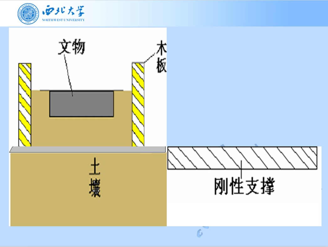 基本提取法應(yīng)用于文物埋藏周圍土壤粘性比較好的情況,包含以下幾個基本的步驟:去除周邊泥土、周邊加固、底切處理和剛性支撐。