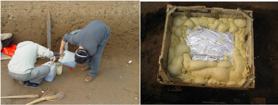 對于特別大件的文物的整體提取,我們用“聚氨酯泡沫提取法”。該方法是以上幾種提取方法中最安全的。