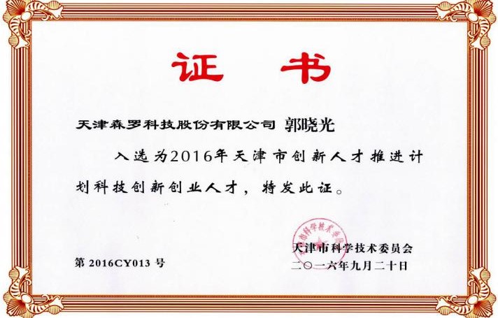 森羅股份董事長郭曉光先生成功入選天津市創(chuàng)新人才推進計劃之科技創(chuàng)新創(chuàng)業(yè)人才