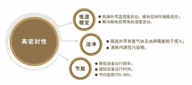 (1)高密封技術(shù)可以阻隔大氣中灰塵、溫濕度、有害生物、氧和污染氣體等對氣調(diào)空間內(nèi)藏品的影響,維持密封空間內(nèi)環(huán)境的穩(wěn)定。