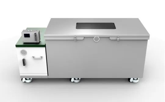 為此,國家文物局考古研究中心和天津森羅科技股份有限公司聯(lián)合研制了“考古發(fā)掘文物氣密充氮脫鹽系統(tǒng)”。系統(tǒng)集成了氮?dú)夤┙o裝置、氣密水箱、超微米氣泡發(fā)生裝置、檢測裝置等。通過氣泡生成系統(tǒng)將氮?dú)庖晕⒚住⒓{米級(jí)氣泡形式充入脫鹽溶液底部,一方面,將脫鹽溶液中的氧氣置換降低溶解氧減緩電化學(xué)腐蝕等;另一方面利用超微米氣泡的大比表面積、自身增壓溶解、在脫鹽溶液中的高溶解率等,使其從文物表層微孔進(jìn)入文物內(nèi)部,完成深層清洗脫鹽,并借助氣泡自身爆破形成的局部負(fù)壓,推動(dòng)清潔水的流動(dòng),實(shí)現(xiàn)出土文物高效脫鹽。常壓低氧氣調(diào)殺蟲系統(tǒng)。