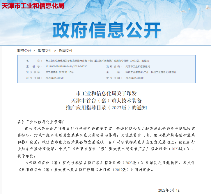 森羅股份多項(xiàng)產(chǎn)品入選《天津市首臺(tái)(套)重大技術(shù)裝備推廣應(yīng)用指導(dǎo)目錄(2023版)》