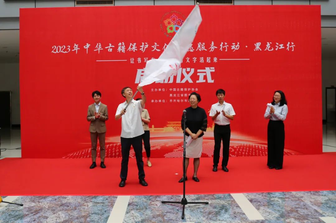 最后,由中國古籍保護(hù)協(xié)會會長劉惠平宣布活動啟動并授旗。