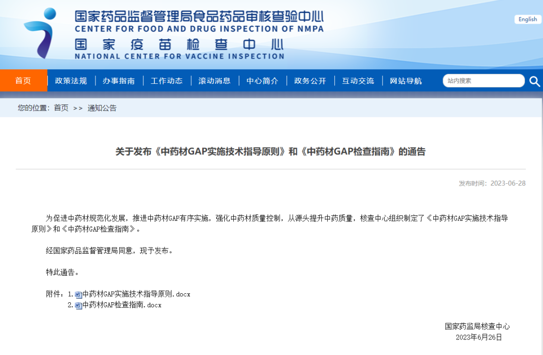 為促進(jìn)中藥材規(guī)范化發(fā)展,推進(jìn)中藥材GAP有序?qū)嵤?,?qiáng)化中藥材質(zhì)量控制,從源頭提升中藥質(zhì)量,國(guó)家藥品監(jiān)督管理局食品藥品審核查驗(yàn)中心組織制定了《中藥材GAP實(shí)施技術(shù)指導(dǎo)原則》和《中藥材GAP檢查指南》,經(jīng)國(guó)家藥品監(jiān)督管理局同意,于6月26日正式發(fā)布。