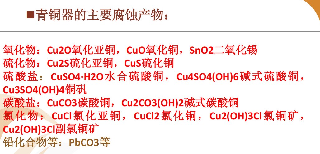 “粉狀銹”主要成分是堿式氯化銅,有多種同分異構(gòu)體,在文物上主要為氯銅礦和副氯銅礦。