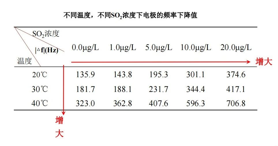 通過(guò)研究不同溫度、不同二氧化硫濃度下電極頻率的下降值,也得出了同樣的結(jié)論,即:隨著二氧化硫濃度的增大、溫度上升,青銅材料腐蝕速率也呈現(xiàn)上升的趨勢(shì)。