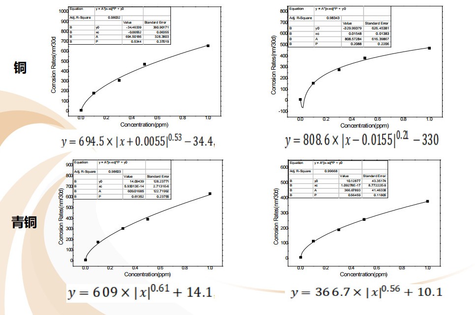此外,研究了有機(jī)酸性氣體對(duì)青銅材料腐蝕速率的影響,隨著有機(jī)酸濃度上升腐蝕加速。