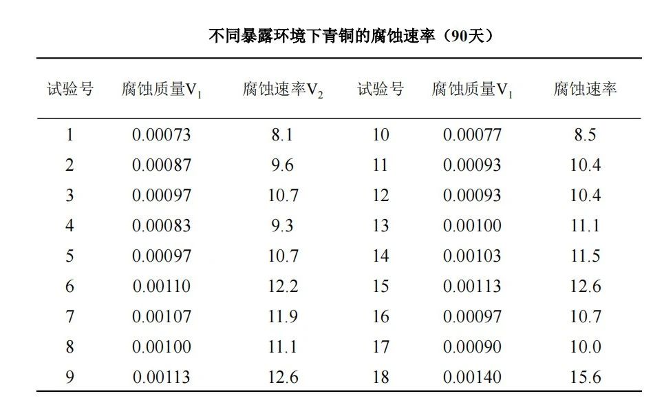 環(huán)境因素對(duì)青銅材料的影響可以用函數(shù)形式(例如:劑量-反應(yīng)曲線、各種相關(guān)數(shù)理統(tǒng)計(jì)模型等)來(lái)描述,其正確與否是與技術(shù)、科學(xué)文獻(xiàn)和規(guī)范報(bào)告中的閾值參考值進(jìn)行比較和驗(yàn)證。