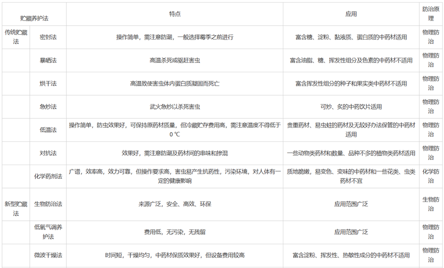 Table 1 Maintenance methods for preventing insect infestation during storage of Chinese medicinal materials