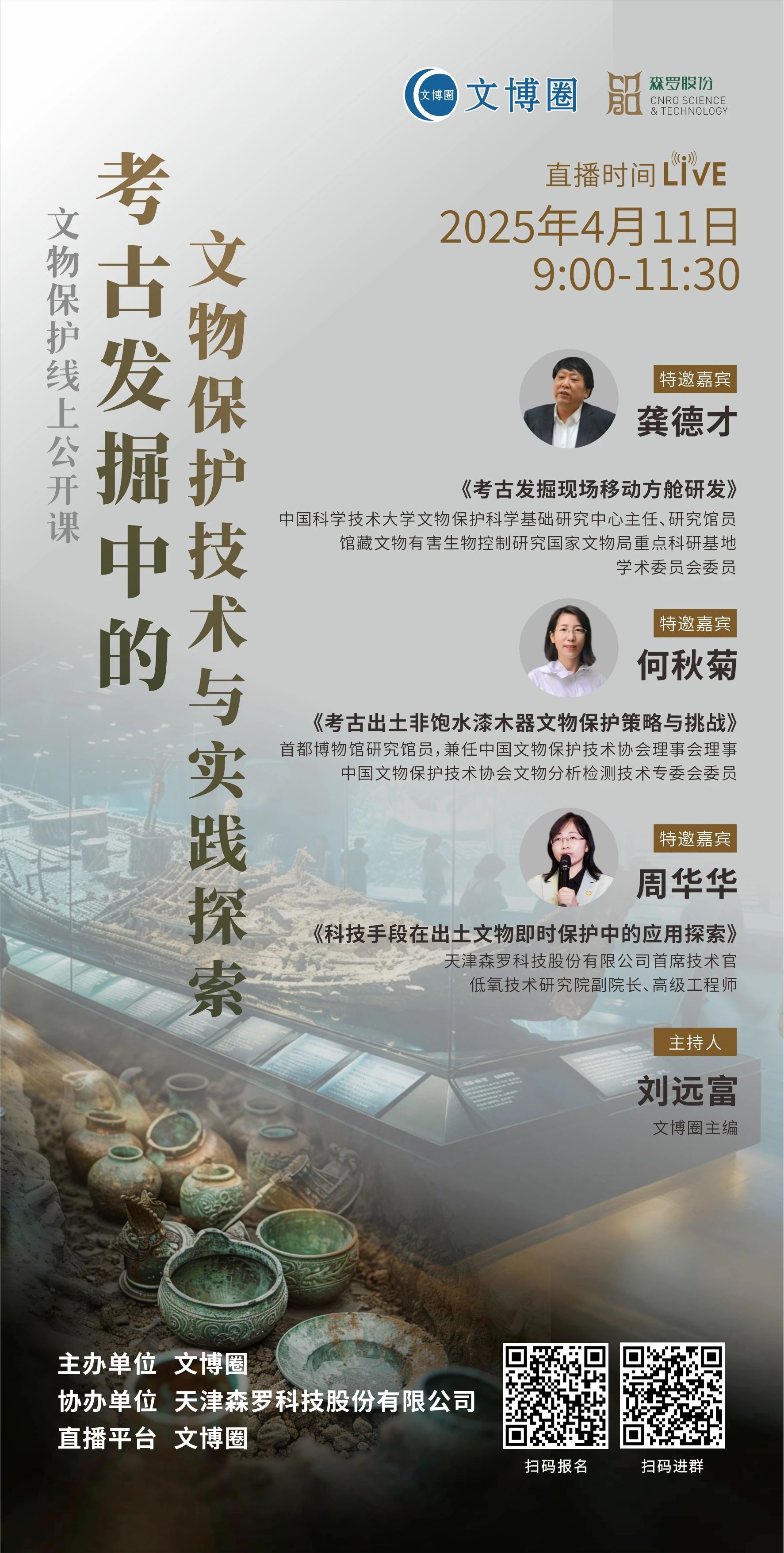 第二期公開(kāi)課直播將于4月11日開(kāi)啟。3位大咖分享考古發(fā)掘中的文物保護(hù)知識(shí),歡迎您報(bào)名參與。