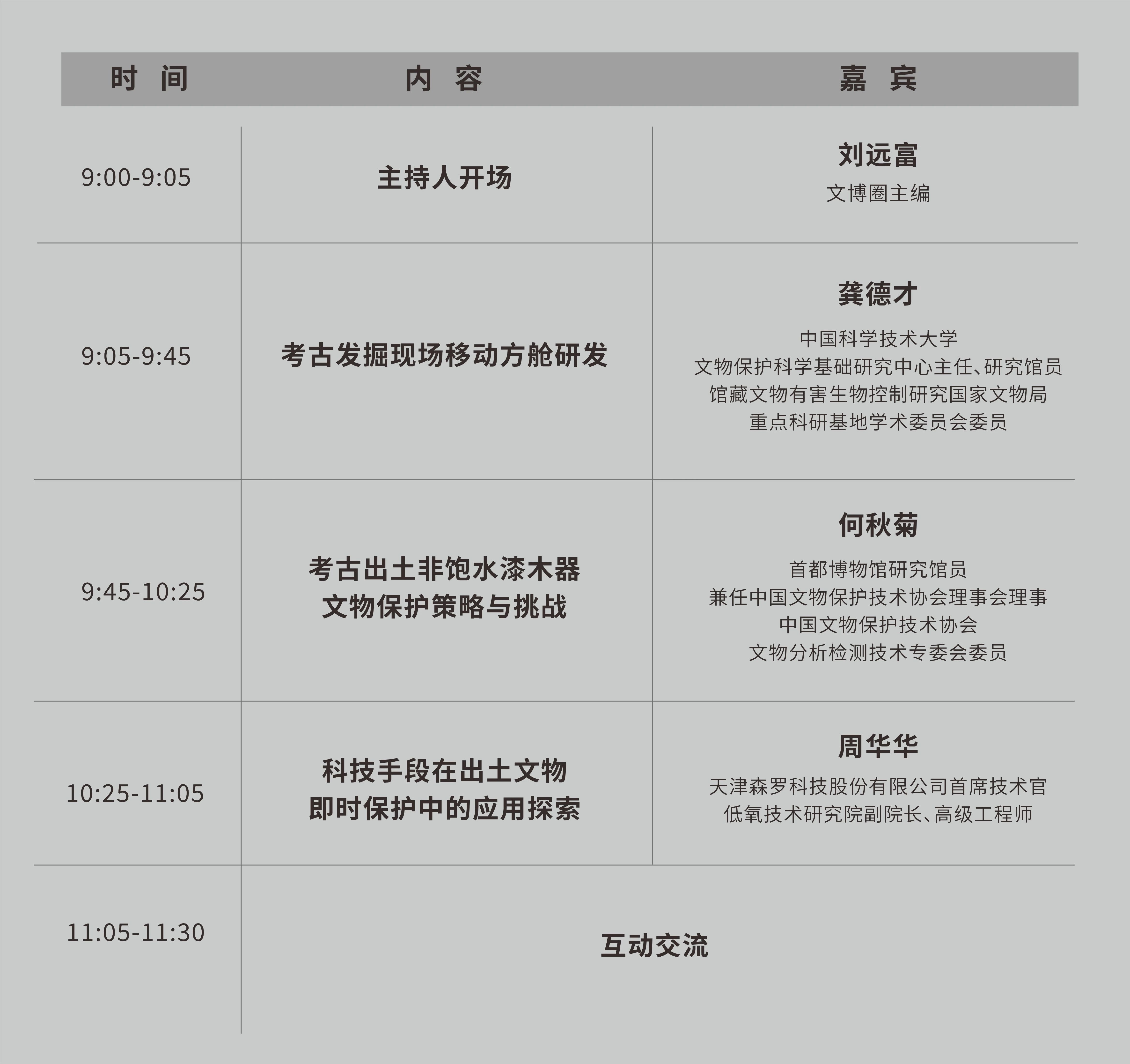 本期公開(kāi)課直播,邀請(qǐng)到相關(guān)領(lǐng)域?qū)<覍W(xué)者,圍繞考古出土文物保護(hù)的學(xué)術(shù)性研究、探索性應(yīng)用、跨學(xué)科融合創(chuàng)新等不同角度,分享他們?cè)诟髯匝芯款I(lǐng)域內(nèi)的深入見(jiàn)解、最新成果及寶貴經(jīng)驗(yàn),為考古出土文物的保護(hù)與研究工作提供新的思路和方法。除主題演講外,還設(shè)置參與抽獎(jiǎng)、互動(dòng)沙龍等多個(gè)環(huán)節(jié),促進(jìn)思想的碰撞與靈感的激發(fā)。