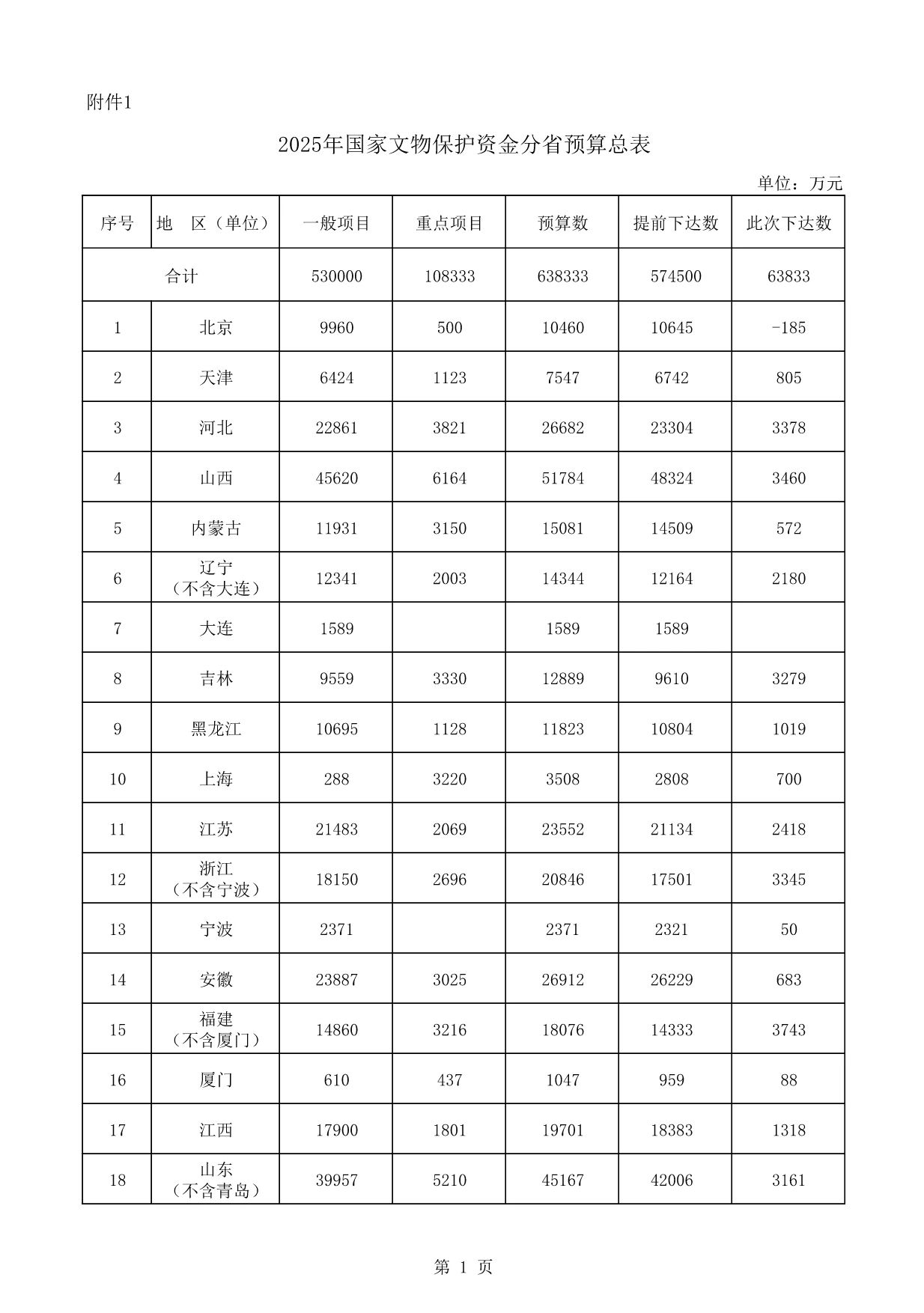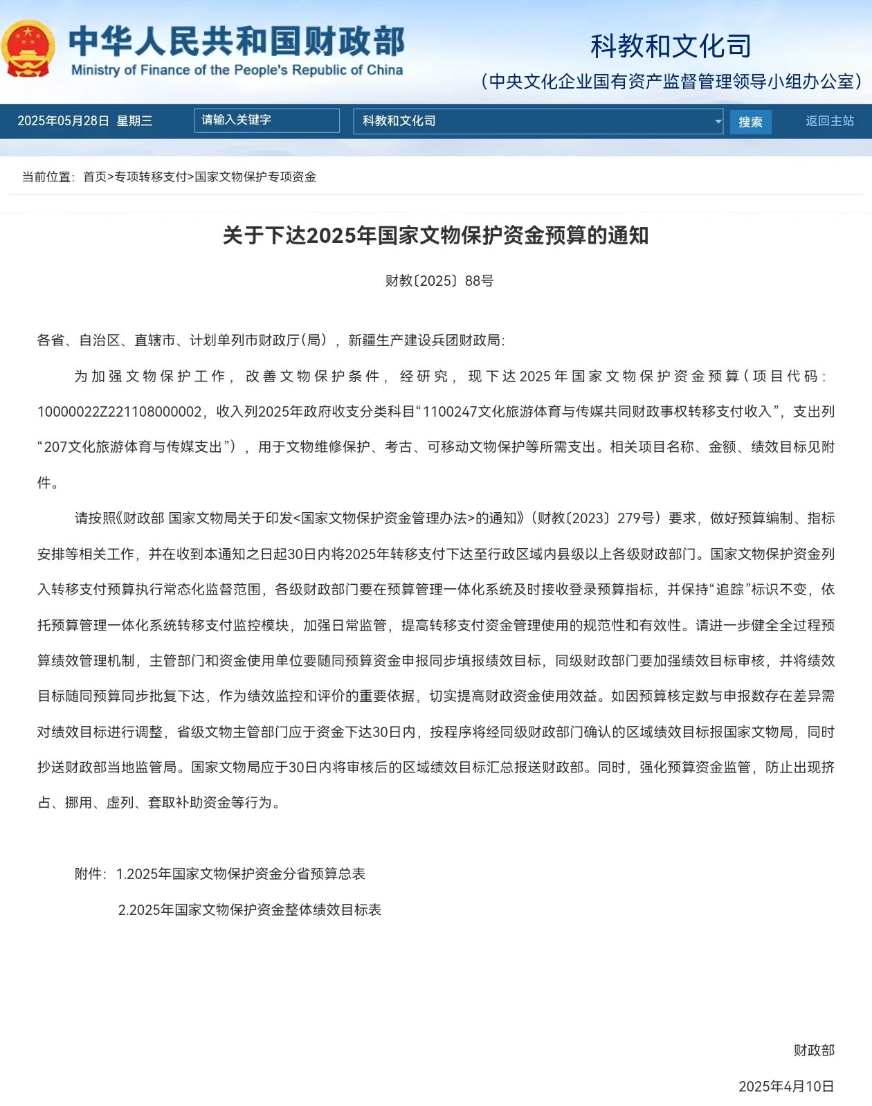 關(guān)于下達(dá)2025年國家文物保護(hù)資金預(yù)算的通知