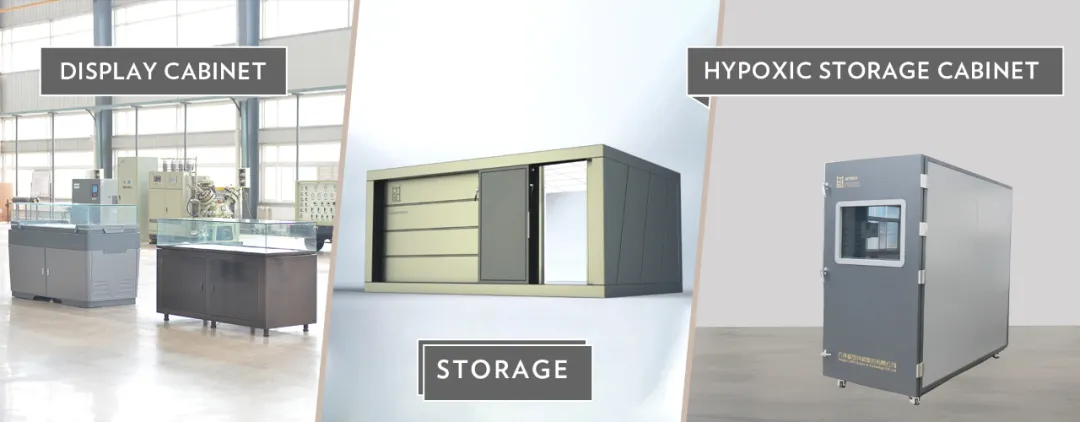 森羅股份文物保護(hù)裝備先后應(yīng)用于考古發(fā)掘、文物長(zhǎng)期儲(chǔ)藏、展覽展示和蟲(chóng)霉防治服務(wù)等領(lǐng)域,形成了高密封恒濕庫(kù)房、恒濕儲(chǔ)藏柜、恒濕展柜和殺蟲(chóng)消毒設(shè)備等系列產(chǎn)品,具有“防蟲(chóng)、防霉、防污染、防腐蝕、防火”等綜合功效,能夠有效抑制有害環(huán)境對(duì)藏品的侵害,使其處于“潔凈、恒濕、低氧、穩(wěn)定”的安全保存環(huán)境,阻止或延緩珍貴藏品的劣變和積累性損壞,從而達(dá)到長(zhǎng)久保存的目的。博物館新建庫(kù)房。
