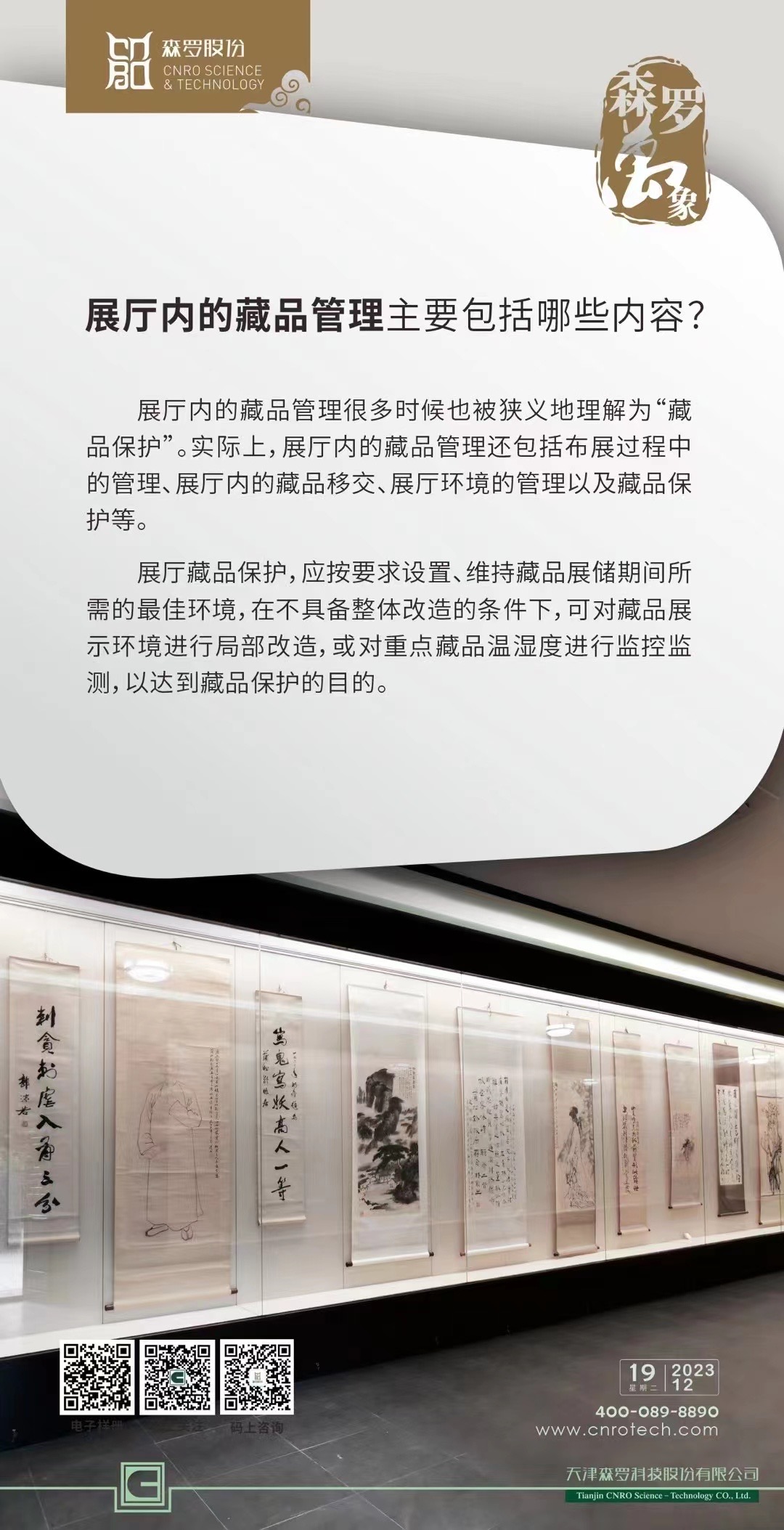 《森羅萬象》,萬象包羅。 58問展廳內(nèi)的藏品管理主要包括哪些內(nèi)容?博物館不知時(shí)光,卻守著時(shí)光,森羅股份既知藏品,亦守護(hù)著藏品,專注于館藏文物小微環(huán)境調(diào)控的“森羅小助手”愿與您共話博物館藏品軼事。