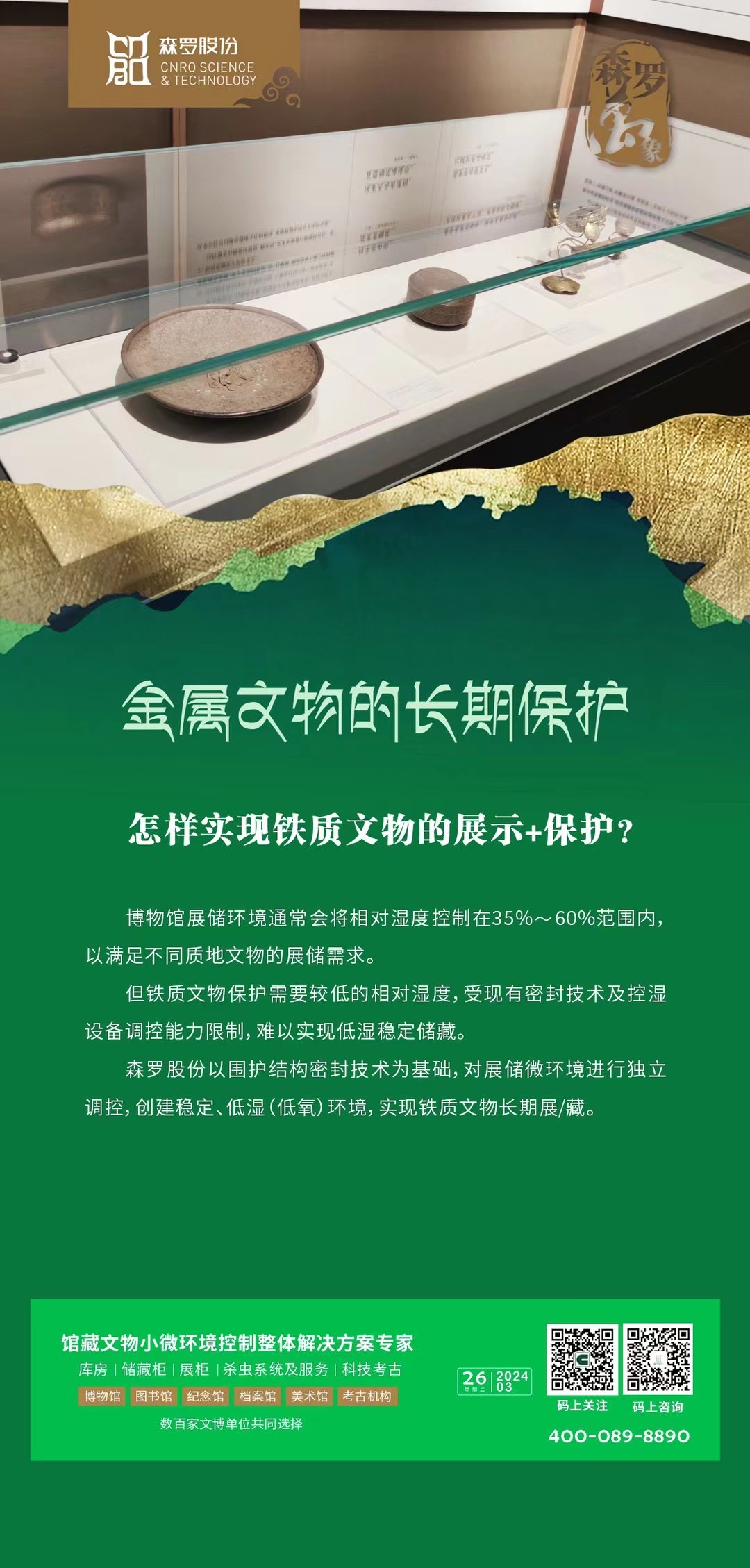 《森羅萬象》,萬象包羅。第72問 怎樣實現(xiàn)鐵質(zhì)文物的展示+保護?文物無語,卻訴說著數(shù)千年的歷史與輝煌森羅有心,終專注于館藏文物小微環(huán)境調(diào)控掃碼私信“森羅小助手”與您暢談金屬文物保護。